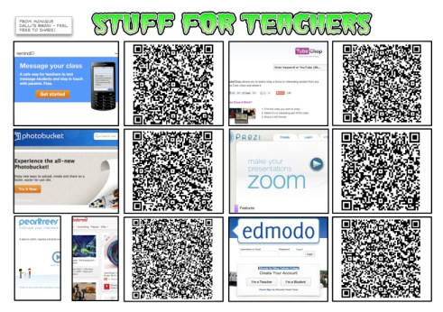 QR Code (abbreviated from Quick Response Code). You may have seen them around, packaging, advertisements or documents. They can link you to all sorts of information URLs, emails, names… almost anything. How can you read them? Well you’ll need a computer and a camera, hang on you probably have one in your bag (your phone/iPod), please keep it in your bag while at school though. So because Technology teachers come from the future, we have started incorporating this tech into our systems to record our daily safety checks on our machinery. Maybe you can use them somewhere?